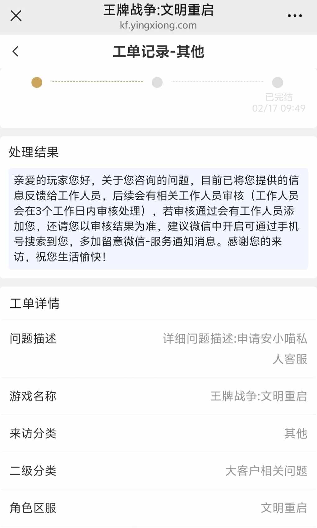 然后过一天之后然后安小喵加我,然后我同意了,我是把我那个消费记录还有那个图片给他看的,然后申请安小喵,然后再让我提供微信绑定的手机号,然后我就等他加我就ok了