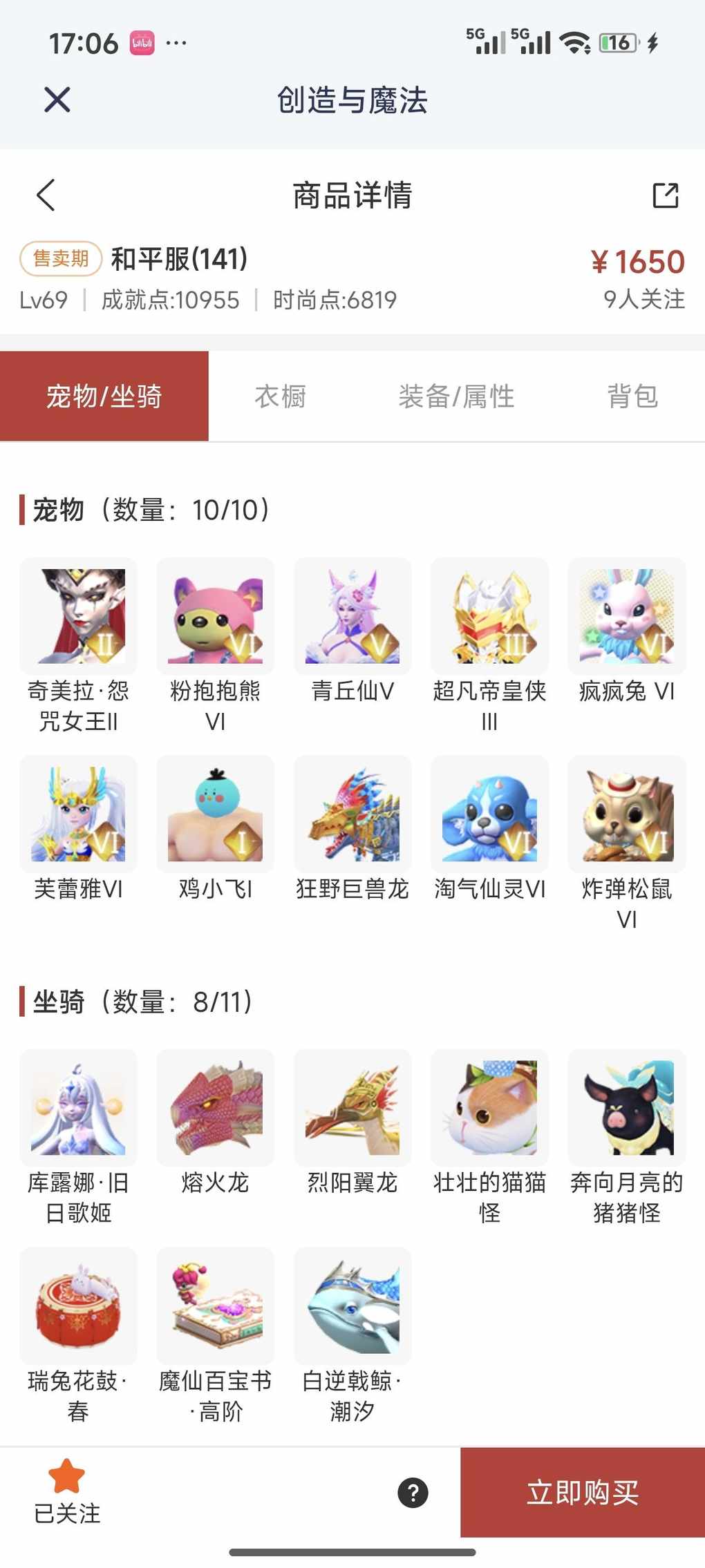 快来看看新上架的角色~区服:和平服(160)-角色等级:Lv69 https://cbe.yingxiong.com/?to=%2Fcm%2Fgoods%2F353406&gameName=cm 来自舱宝鹅(创造与魔法)需要可以了解一下